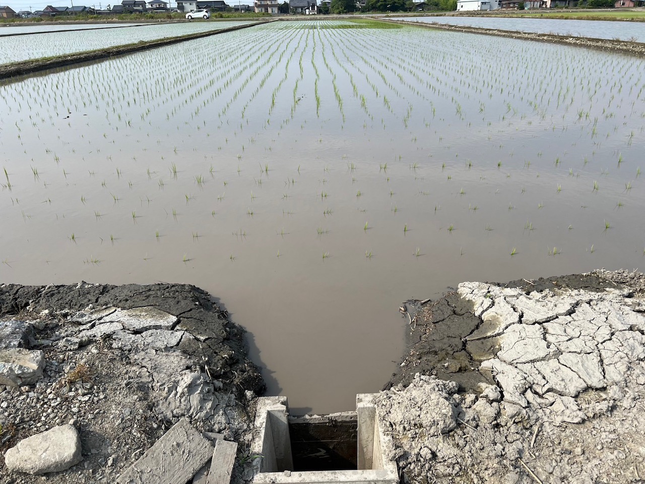 今回の試験としては稲田の両端にエンザイムソースを水で希釈したものを撒いております。