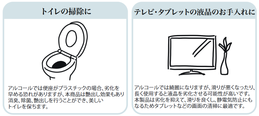 | 効果 | 除菌・洗浄・消臭・防汚・防錆・光沢復元・静電気防止 |